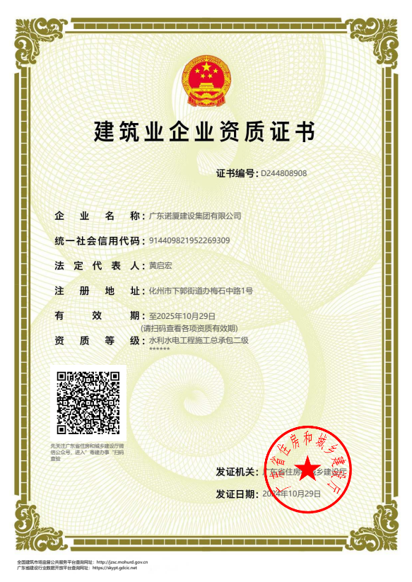 廣東諾廈建設集團有限公司是諾廈集團的核心企業,具備國家房屋建筑工程施工總承包壹級、市政工程施工總承包壹級、港口與航道工程總承包、建筑裝修裝飾工程、消防設施工程、地基基礎工程、機電設備安裝工程、體育場地設施工程、建筑智能化工程、河湖整治工程、水利水電工程等資質。......
